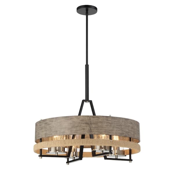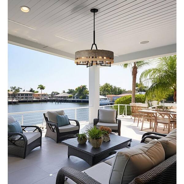 Silver Creek 4-Light Stone Grey, Black and Brushed Nickel Outdoor Chandelier with Clear Seeded Glass
