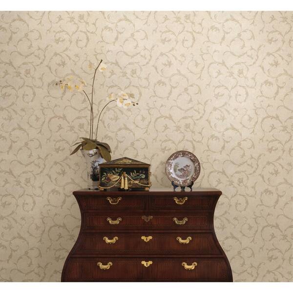 Clover Beige Acanthus Scroll Beige Vinyl Peelable Roll (Covers 56.4 sq. ft.)