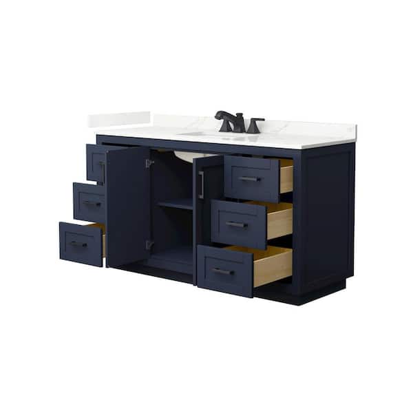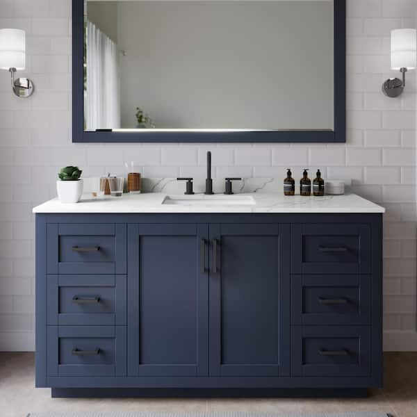 Miranda 60 in. W x 22 in. D x 33.75 in. H Single Bath Vanity in Dark Blue with Giotto Quartz Top