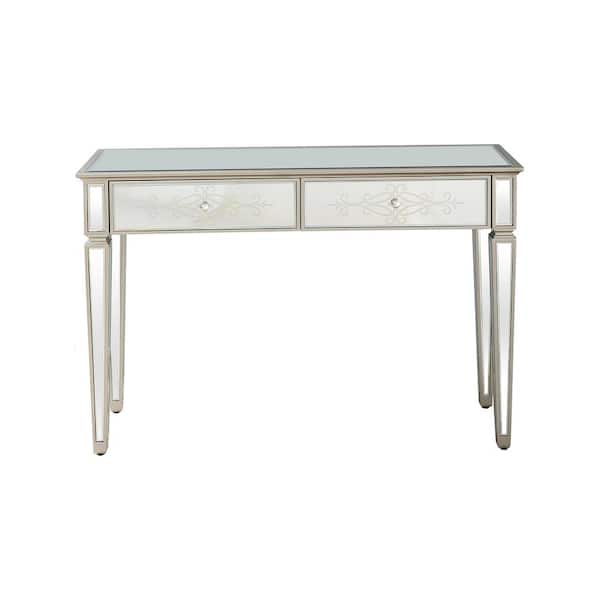 Miriam 47.25 in. Antique Silver Rectangle Glass Console Table