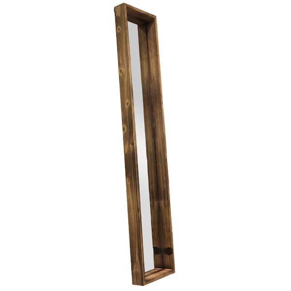 12 in. W. x 60 in. Deep Wood Box Mirror with Brown Finish, Fir Wood with 3 in. ledge