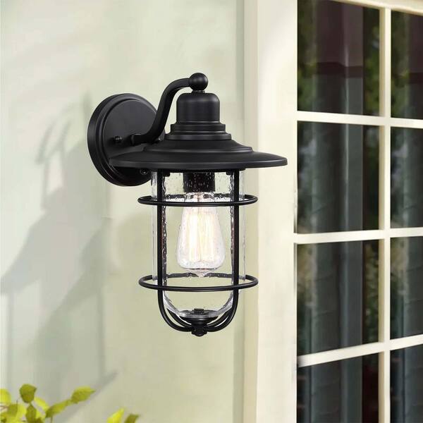1-Light Black Hardwired Outdoor Wall Lantern Sconce with Clear Glass Shade