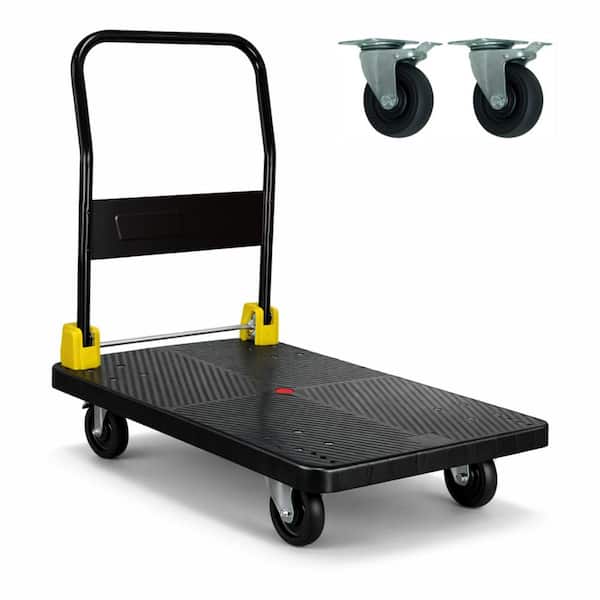880 lbs. Capacity Platform Truck Flatbed Cart Heavy Duty Steel Foldable Push Cart Dolly with Swivel Brake Casters