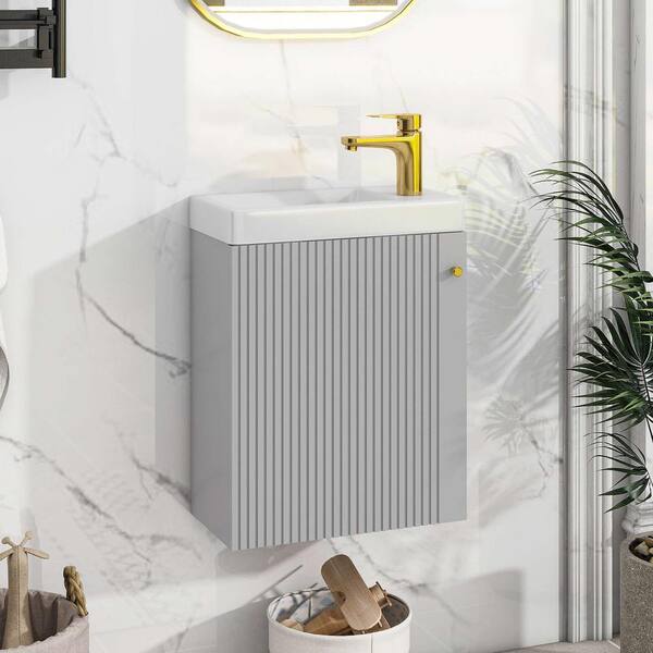 Ami 16 in. W x 8.7 in. D x 20.5 in. H Single Sink Bathroom Vanity in Gray with Ceramic Top (Soft-Close Door)