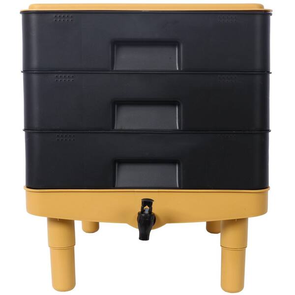 Ami 17.2 Gal. All-Season Outdoor 3-Layer Worm Compost Bin Inclusive Worm Farm Kit, 65L Worm Composter