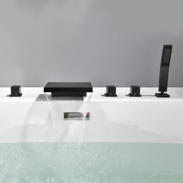 Ami 2-Handle5Hole Tub Deck Mount Roman Tub Faucet with Hand Shower in Matte Black