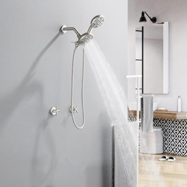 Ami Double Handle 7-Spray Shower Faucet 1.8 GPM with Ceramic Disc Valves in. Brushed Nickel