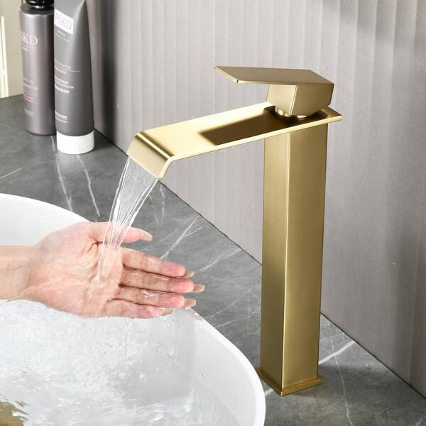 Ami High Arc Single Handle Single-Hole Bathroom Faucet 1.2 GPM with Drain in Brushed Gold