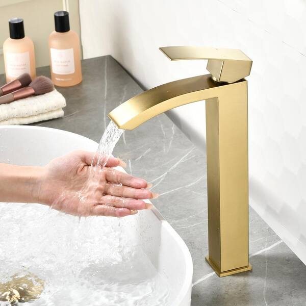 Ami High Arc Single Handle Single-Hole Bathroom Faucet 1.2 GPM with Drain in Brushed Gold
