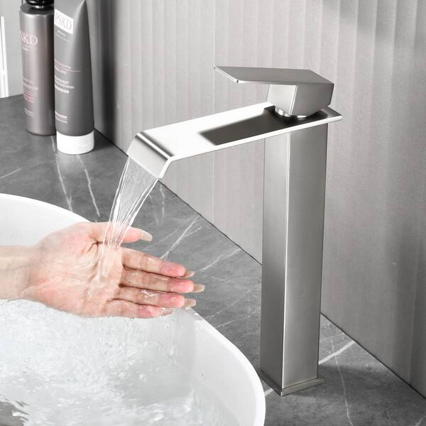 Ami High Arc Single Handle Single-Hole Bathroom Faucet 1.2 GPM with Drain in Brushed Nickel