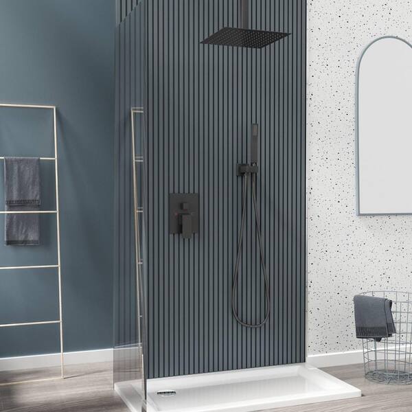 Ami Single Handle 2-Spray 10 in. Ceiling Mount Shower Faucet 1.8 GPM with Pressure Balance Valve in. Matte Black
