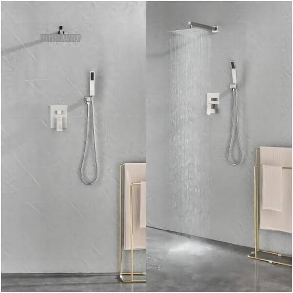 Ami Single Handle 2-Spray 12 in. Wall Mount Shower Faucet 2 GPM with Pressure Balance Valve and Niche in. Brushed Nickel