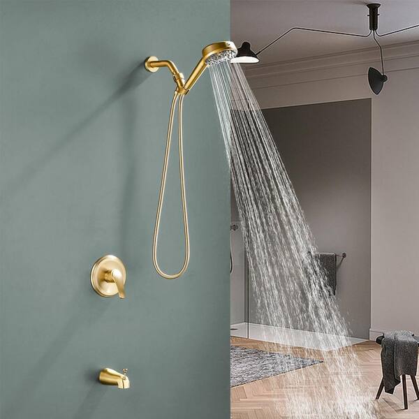Ami Single Handle 7-Spray Tub and Shower Faucet 1.8 GPM with Spout in. Brushed Gold (Pressure Balance Valve Included)
