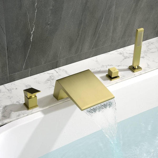 Ami Single-Handle Four Hole Tub Deck Mount Roman Tub Faucet with Hand Shower in Brushed Gold