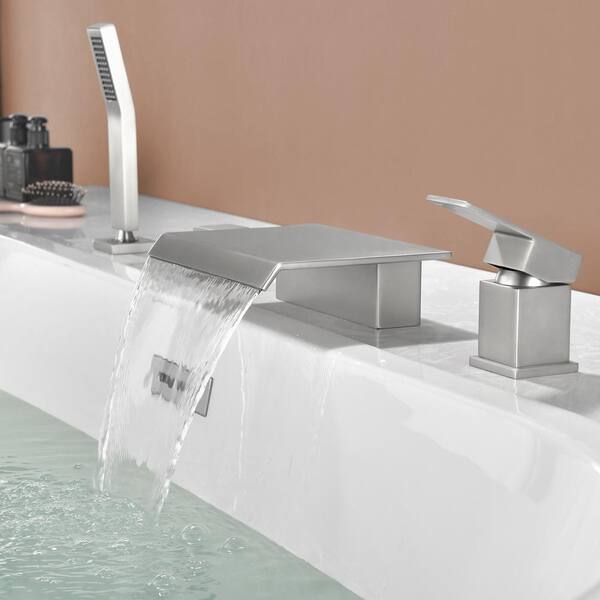 Ami Single-Handle Four Hole Tub Deck Mount Roman Tub Faucet with Hand Shower in Brushed Nickel