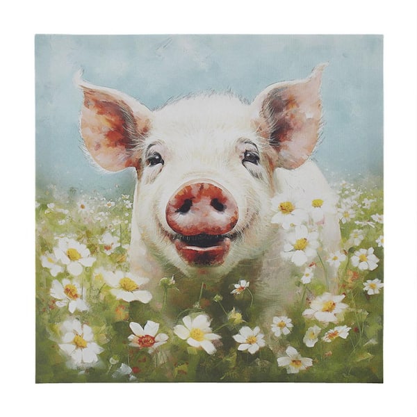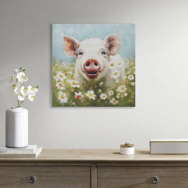 Anky 1-Piece Unframed Art Print 16 in. x 16 in. Pig Canvas Wall Art