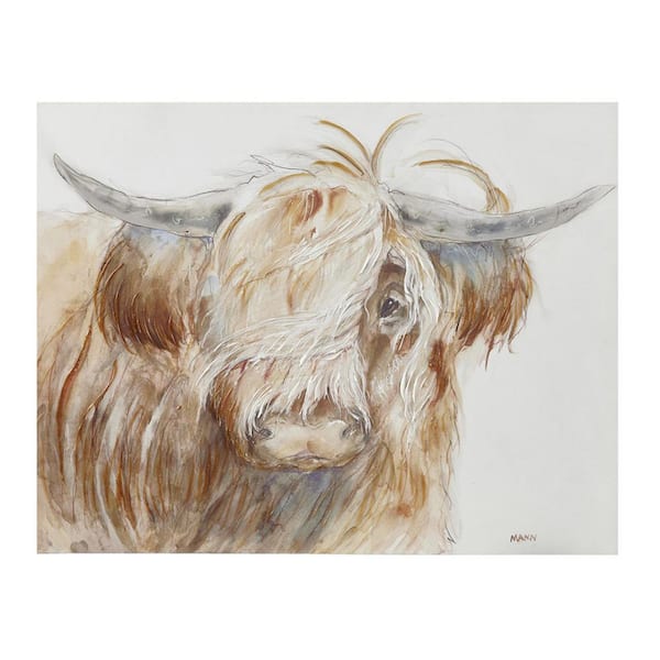 Anky 1-Piece Unframed Art Print 20 in. x 26 in. Hand Embellished Highland Bull Canvas Wall Art