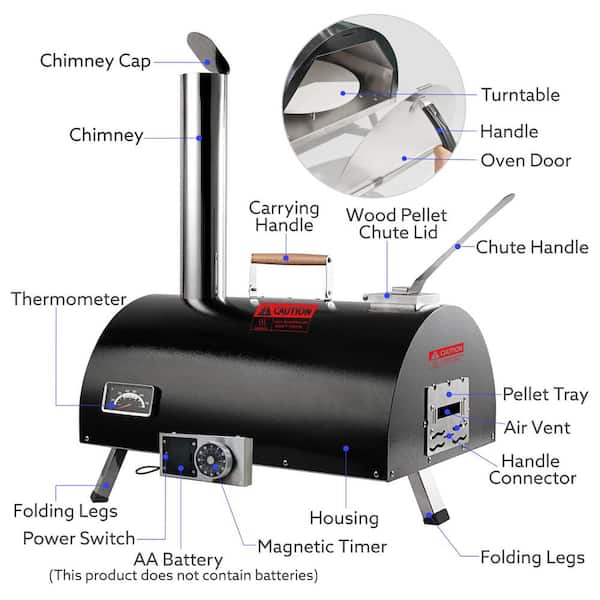 Anky 12 in. Stainless Steel Wood Pellet Outdoor Pizza Oven in Black, Built-in Thermometer Pizza Cutter and Carry Bag