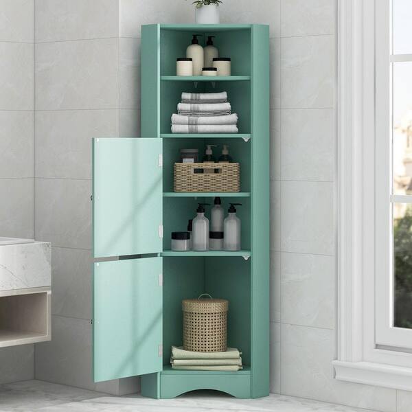 Anky 14.96 in. W 14.96 in. D 61.02 in. H Green MDF Freestanding Bathroom Storage Corner Linen Cabinet