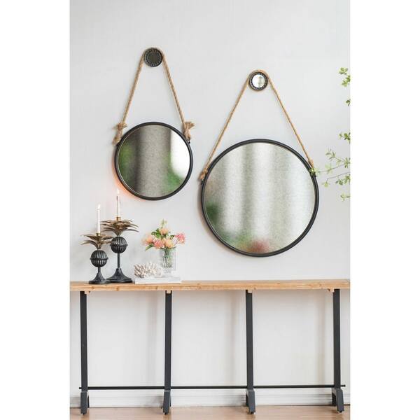 Anky 19.5 in. W x 19.5 in. H Iron Framed Black and Silver Hanging Wall Mounted Decorative Mirror