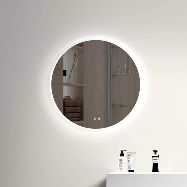 Anky 24 in. W x 24 in. H Round Frameless Wall Mount LED Bathroom Vanity Mirror, Adjustable Brightness and Temperature