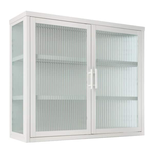 Anky 27.6 in. W x 9.1 in. D x 23.6 in. H Retro Bathroom Storage Wall Cabinet with Fluted Glass Doors in White