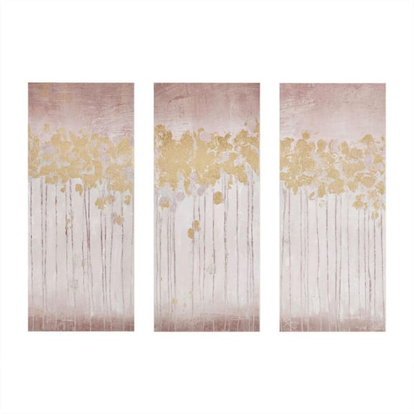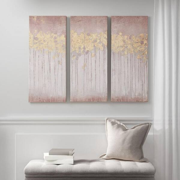 Anky 3-Piece Framed Art Print 35 in. x 15 in. Gold Foil Abstract Canvas Wall Art Set