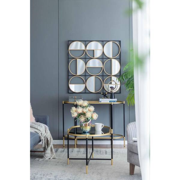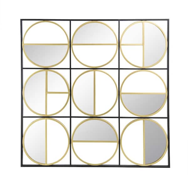 Anky 35.6 in. W x 35.6 in. H Iron Framed Golden Black Wall Mounted Decorative Mirror