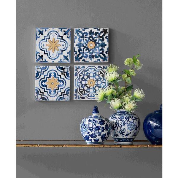 Anky 4-Piece 9.5 in. x 9.5 in. White plus Blue Abstract Wood Wall Art
