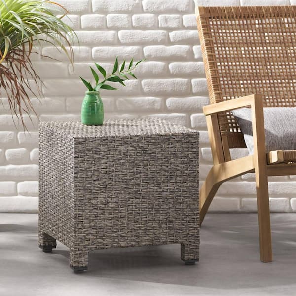 Anky Black Square Wicker 18 in. H Accent Outdoor Coffee Table