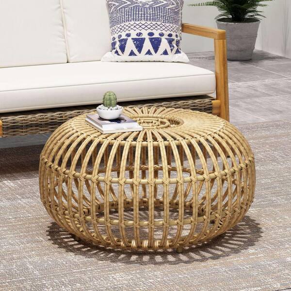 Anky Light Brown Round Wicker 15.3 in. H Outdoor Coffee Table