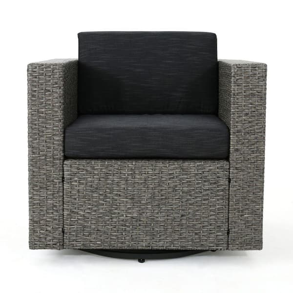Anky Swivel Club Chair Gray Wicker Outdoor Lounge Chair with Black Cushion