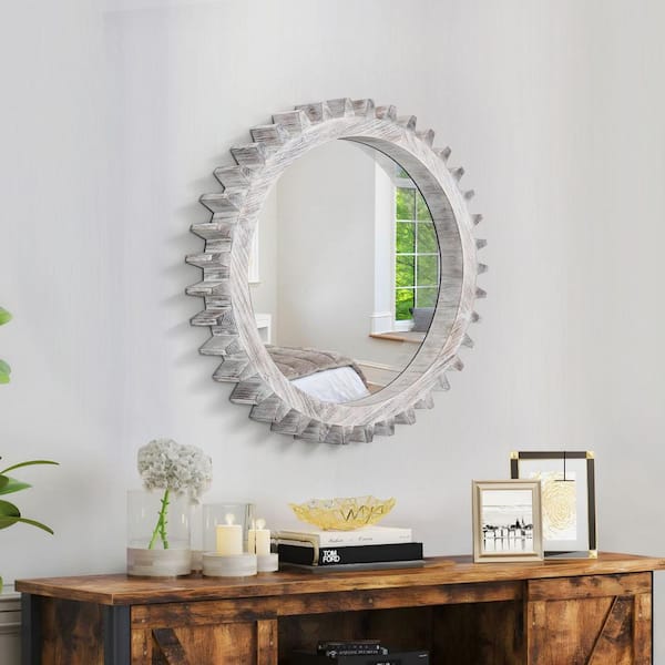 Anky White 16.53 in. W x 16.53 in. H Round Wooden Framed Decorative Wall Mirror, Bathroom Vanity Makeup Mirror