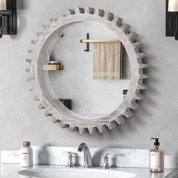 Anky White 33.86 in. W x 33.86 in. H Round Wooden Framed Decorative Wall Mirror, Bathroom Vanity Makeup Mirror
