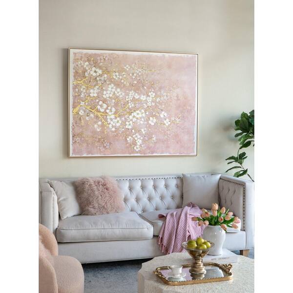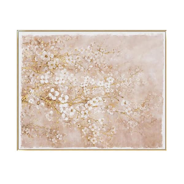 Avex 1-piece Framed Art Print 47.2 in. x 59.1 in. Hand-Painted Cherry Blossom Canvas Art