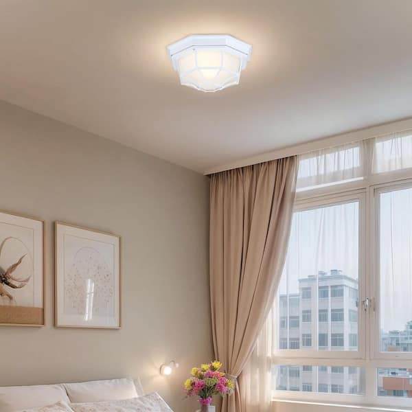 Avex 11.42 in. 1-Light Textured White Semi-Flush Mount with Frosted Glass Shade and No Bulbs Included