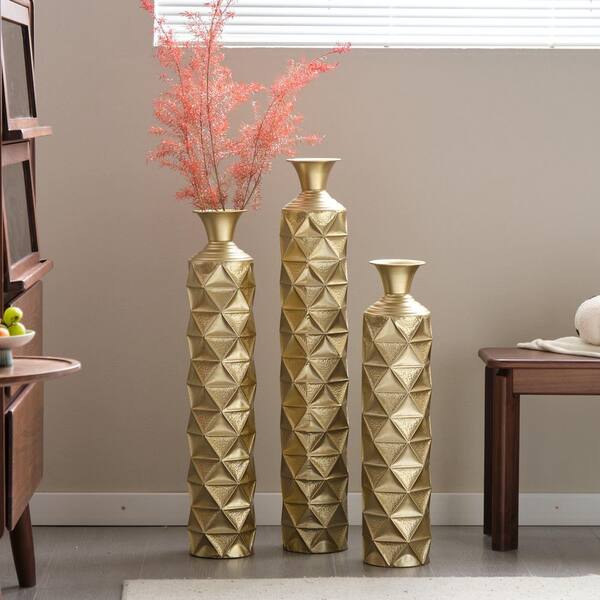 Avex 25/30/34 in. H Antique Gold Metal Cylinder Decorative Vase Set (3-Pieces)