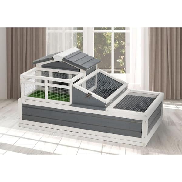Avex 3-Room Small Animals House Habitat Indoor/Outdoor Wooden Tortoise Enclosure with Turf Balcony and 2 Stories