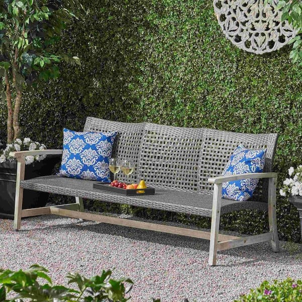 Avex 76 in. W Grey Metal and Wood Outdoor Patio Bench Chair with Back