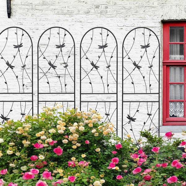 Avex Black 4-Pieces 19.7 in. W x 71 in. H Metal Garden Trellis for Climbing Plants Outdoor Flower Support