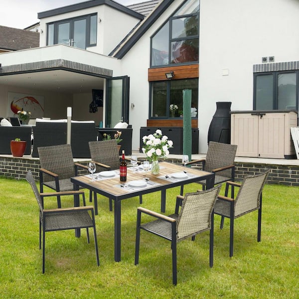 Avex Black Gray 7-Piece Wood and Metal Patio Outdoor Dining Set with Umbrella Hole