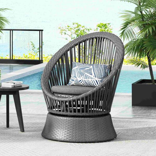 Avex Dark Grey Swivel Wicker Outdoor Lounge Chair with Grey Cushions