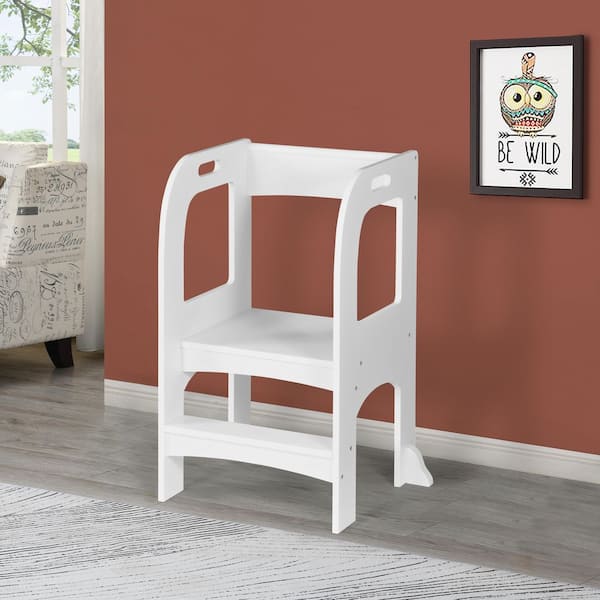 Avex White 2-Step 1.5 ft. Reach Height MDF Kids Standing Tower Step Stool with 50 lb. Load Capacity