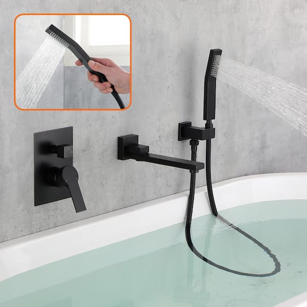Oberlin Single-Handle Wall Mount Roman Tub Faucet with Swivel Tub Spout and Hand Shower in Matte Black