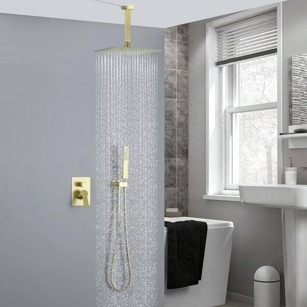 Rainfall 1-Handle 1-Spray Ceiling Mount 12 in. High Pressure Shower Faucet in Brushed Gold (Valve Included)