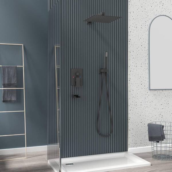 Single Handle 3-Spray Tub and Shower Faucet 1.8 GPM 12 in. Wall Mount Shower Head in Matte Black Valve Included