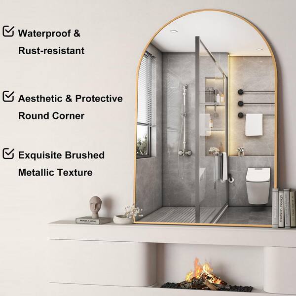 Thi 24 in. W x 32 in. H Modern Arched Aluminum Framed Living Room Wall Mirror Bathroom Vanity Hanging Mirror in Gold