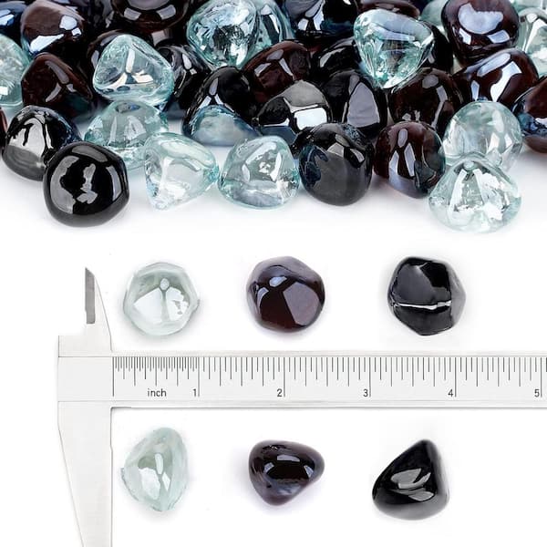 1/2 in. 10 lb. Reflective Tempered Fire Glass Diamond for Indoor/Outdoor Gas Fire Pit & Fireplace, Black,Amber & Crystal