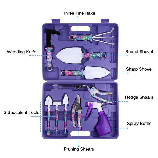 10-Piece Garden Tool Set with Floral Print Ergonomic Handles Includes Trowel Rake Shears Case Gift for Women
