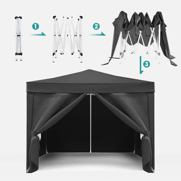 10 ft. x 10 ft. Outdoor Folding Pop-Up Canopy Gazebo Portable Tent w/4 Removable Sidewalls for Parties, Camping, Black